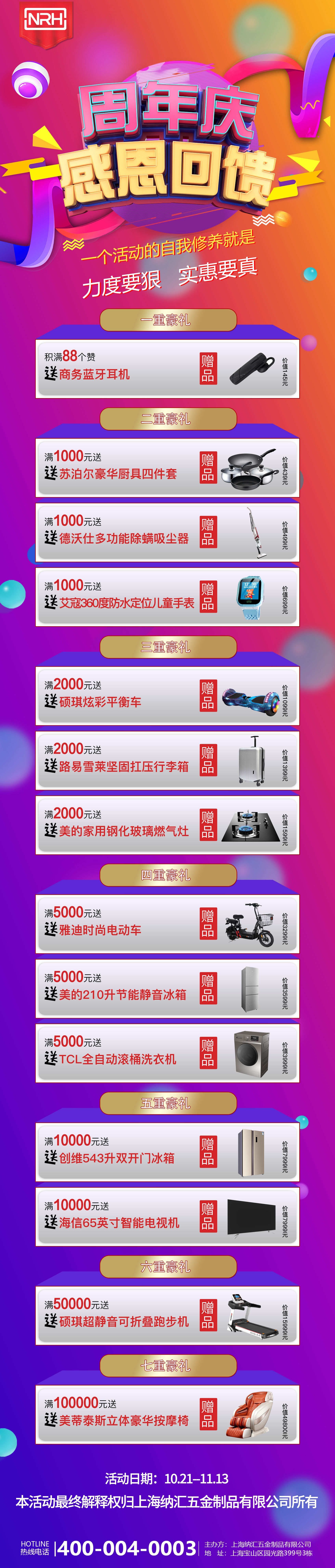 为感谢新老客户对丝瓜视频免费在线观看多年鼎力支持与一致的认可NRH丝瓜视频免费在线观看品牌,我司定于在23周年庆,举行满金额免费大送礼品活动,为感恩新老客户的回馈,豪礼多多等您来取哦!
